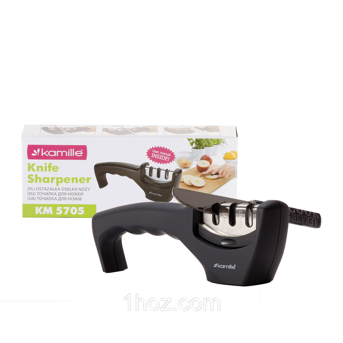 Точилка для ножів Kamille - прекрасний помічник на кухні. Така точилка дуже проста і зручна у використанні - Ви за лічені хвилини зможете заточити ніж, при цьому не докладаючи особливих зусиль.