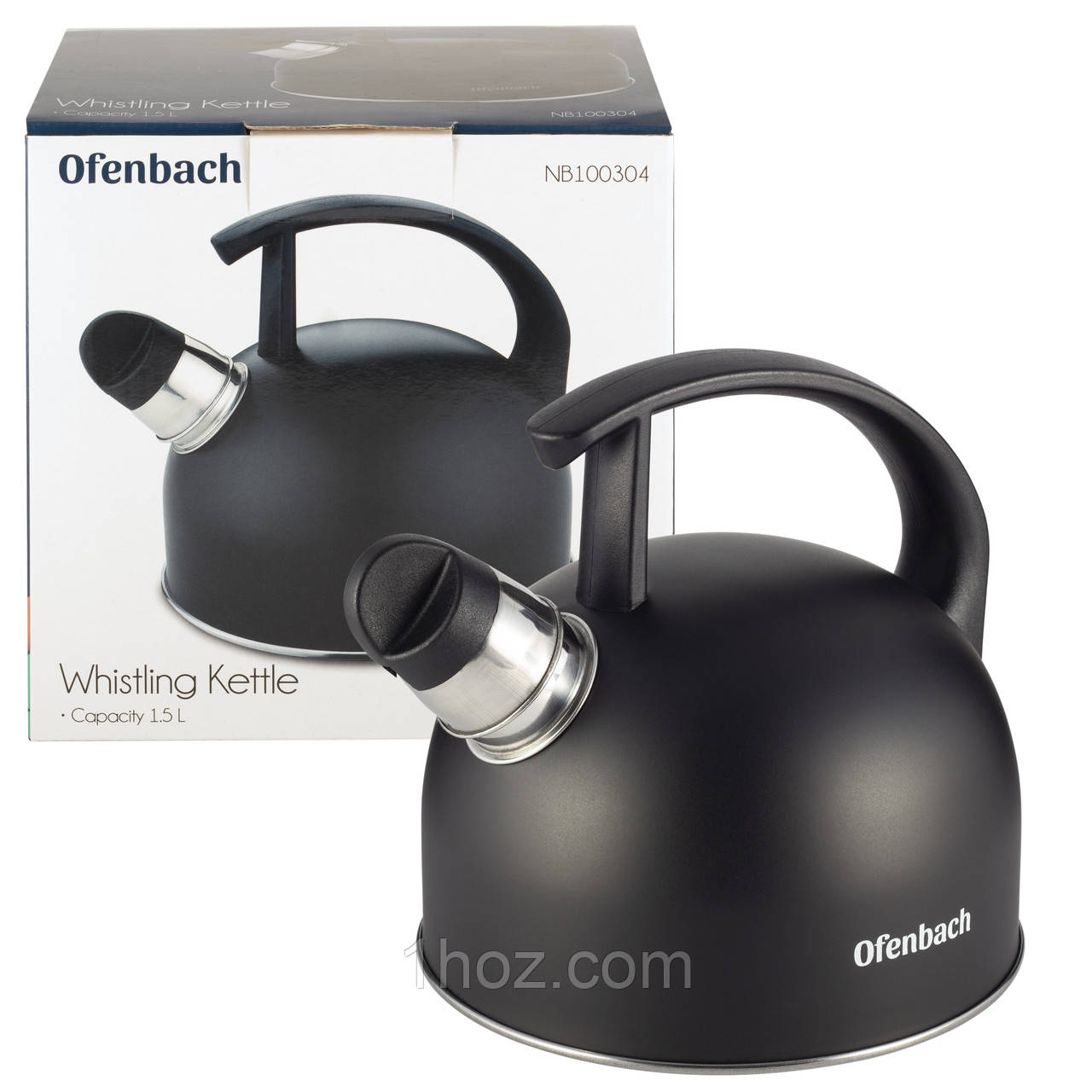 Чайник Ofenbach Чорний 1,5 л з нержавіючої сталі зі свистком і нейлонової ручкою для індукції і газу KM-100304