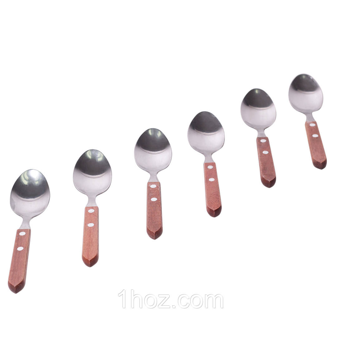 Набір столових ложок Kamille KM-5302 6 предметів Ложки з нержавіючої сталі з дерев'яними ручками