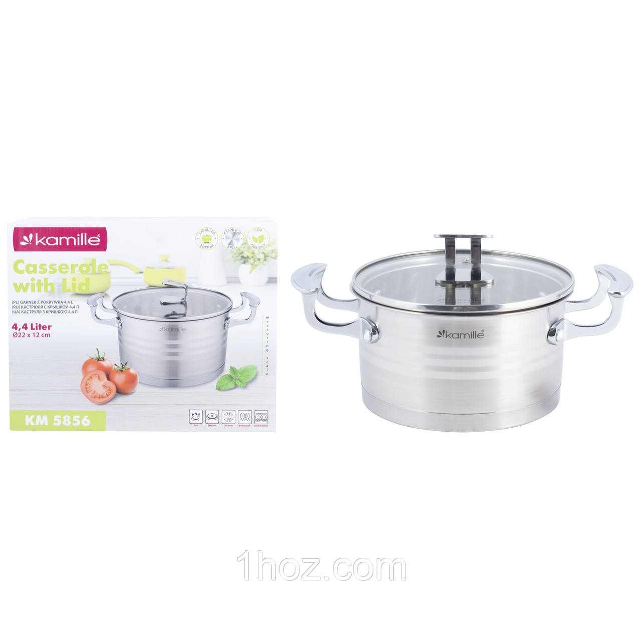 Каструля з кришкою з нержавіючої сталі Kamille KM-5856 4,4л Каструля для газовий плити та індукційної