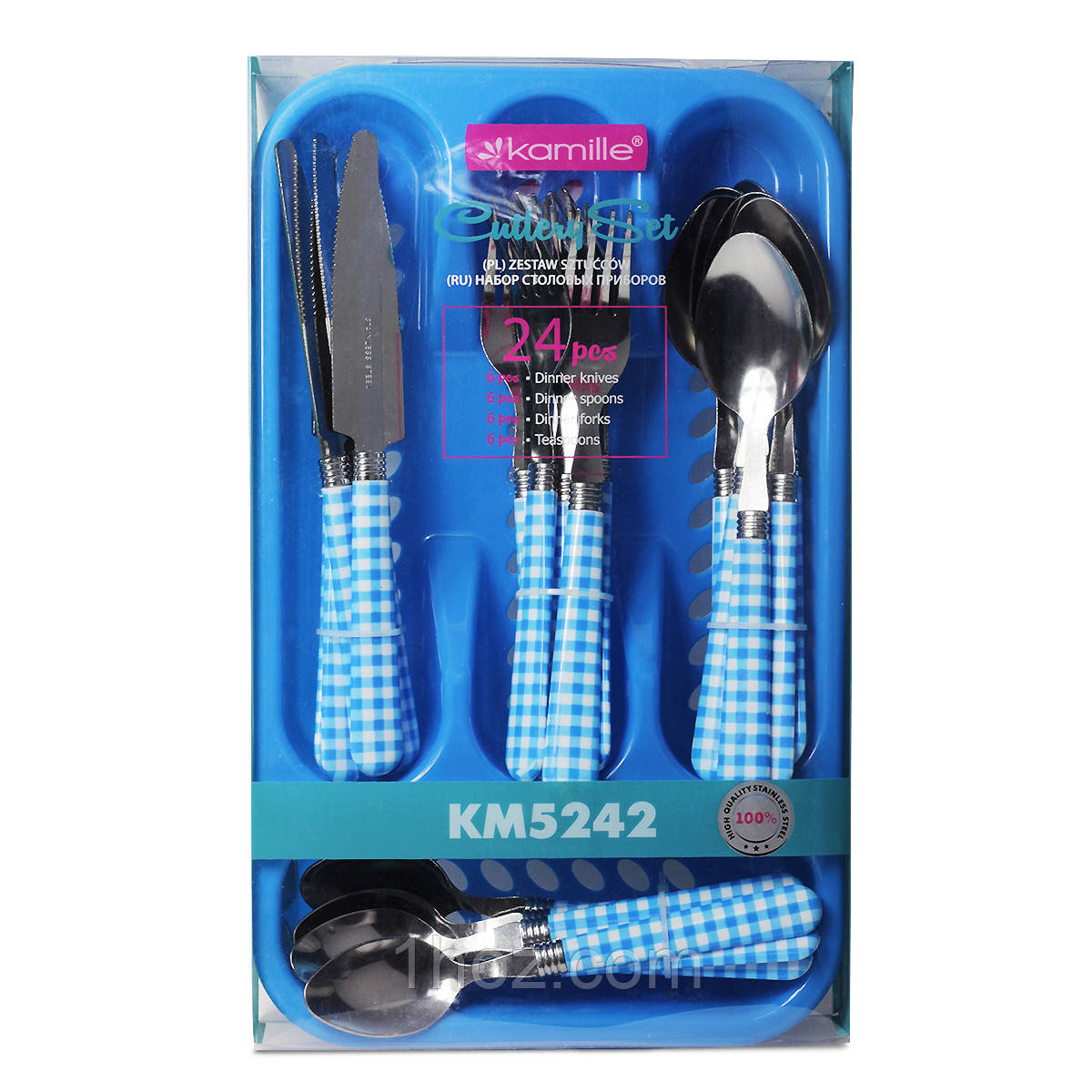 Набір столових приладів Kamille Синій 24 предмета з нержавіючої сталі з пластиковими ручками і підставкою